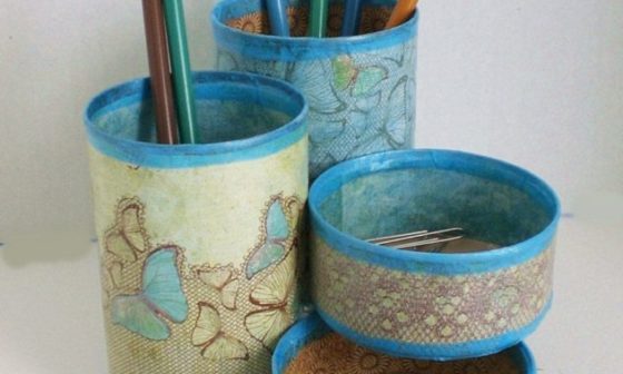 Wadah Aksesoris dari Kardus Decoupage