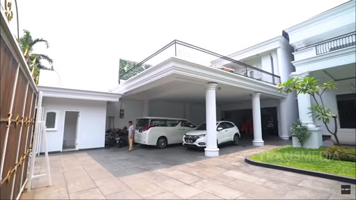 Tampilan kanopi rumah mewah ini tidak seperti kanopi pada umumnya ya, karena terbuat dari cor-coran. Atapnya yang bisa disebut dengan balkon rumah bisa menjadi teras tambahan di lantai 2.