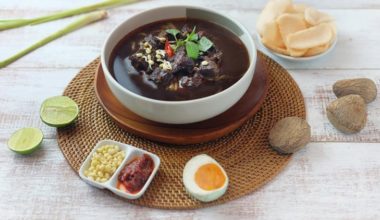 - Garam, gula merah, dan asam jawa dimasukkan sebagai penambah cita rasa. Masak kembali hingga semua bahan isian empuk dan matang.